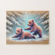 Uppspelningsbjörn Unge i Snö Pastel Chalk Teckning Pussel