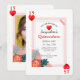 Vi presenterar "15:e födelsedagskortet Quinceañera,"-festinbjudan. Lika unik som den vackra person som firar den speciella milstolpen. En mjuk, elegant och mjuk design med en liten bit rosa och rött. Lägg enkelt till din party-information och ett favoritfoto för att ringa familj och vänner tillsammans i firande.
