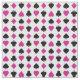 Hjärter, spader, klubbar och diamanter med livlig rosa och vanlig svart utgör denna grafiklösning som bygger på att man spelar upp kostym.