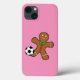 Ett exempel på en pepparkaksgubbe i lycklig med en grönt som spelar fotboll eller fotboll och försöker nå ett mål. Låt oss njuta av julsäsongen med bra mat, gåva ge och tillbringa tid med familj och vänner. Denna utformning är en kombination av idrott och jul.