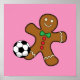 Ett exempel på en pepparkaksgubbe i lycklig med en grönt som spelar fotboll eller fotboll och försöker nå ett mål. Låt oss njuta av julsäsongen med bra mat, gåva ge och tillbringa tid med familj och vänner. Denna utformning är en kombination av idrott och jul.