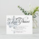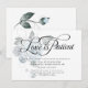 Uppskov | En genomskinlig bukett av dammiga blå akvarellrosor - Kärlek är tålamod i skriv kalligrafi - Om du har skickat inbjudningarna och oväntat har varit tvungen att pausa datumet för ditt stora evenemang, skicka dessa till dina gäster. Anpassa text, typsnitt, färg och storlek. Originalkonst skapad för BarefootBride ™ av © WhimsicalArtwork ™ - Det här är en del av en komplett brölloppspapper med matchande bröllop, baby shower och andra evenemangspapper.