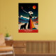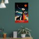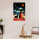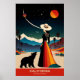 Upptäck "Kalifornien: The Land of Dreams" med den här fantastiska reseaffischen! I den här fantastiska scenen, en kvinna i en vibrant klänning och vid en brun hatt bredvid en björn, som båda tittar upp på en brinnande natt himmel med planeter och stjärnor. Bakgrunden är stora berg med snö och svalnande handflatan träd, som är perfekt uttryck för Kaliforniens mångsidiga skönhet. Ovanför den här visuella tableau fångas den magi och äventyr som väntar i Golden State i "Kalifornien: The Land of Dreams".
