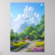 Denna digitala grafik avslöjar en liten japansk shrine som är diskret inkapslad i en fängslande och bildande trädgård. Scenen utstrålar en luft av lugn och inbjudan är tittaren som utforskar de hemliga hörnen av denna fantastiska fristad. Konsten firar den känsliga balansen mellan den mystiska skalan av shrin och den naturliga skönheten i den trädgård som omger den. Det skapar en känsla av och inbjudan tänkande, som fångar kärnan av fred och lugn som finns i gömt hörn av naturen.