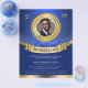 Skåp för tolkning av pastoralt värde har blått och guld färg-färgpalett, bildinfogning av anpassade medalj ram och guld-banderoll som placering för tillagd text. En formell och professionell flygare som befordrar din kyrka och tillkännager pastorns uppskattningstjänst.