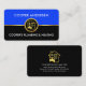 Ett ljusblått lagrar med sin svarta motsvarighet avgränsas av en guld-linje nära mitten. Att rida på denna framgångslinje i guld är en guld-logotyp för "VS och uppvärmning" som du kan använda. Över överst på kortet ljuger ditt prestigefyllda namn med företaget namn i motsatt riktning. På andra sidan, i ett svart täcke, ligger logotypen guld högst upp, följt av ert prestigefyllda namn och kontaktuppgifterna. En professionell för rörmokare till använda. #plumbinganduppvärmning #plumbers #plumbering #plumbingservice #plumbingprovider #pipefitter #vattenpipe #faucet #vattenfaucet #homeplumbering #zazzlemade