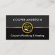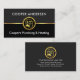 Ett täcke med grått och svart skikt avgränsas av en linje i guld nära kortets centrum. Att rida på denna framgångslinje i guld är en guld-logotyp för "VS och uppvärmning" som du kan använda. Över överst på kortet ljuger ditt prestigefyllda namn med företaget namn nära basen. På andra sidan, i ett grått-omslag, är guld-logotypen överst och följs av ditt prestigefyllda namn och kontaktuppgifterna. En professionell för rörmokare till använda. #plumbinganduppvärmning #plumbers #plumbering #plumbingservice #plumbingprovider #pipefitter #vattenpipe #faucet #vattenfaucet #homeplumbering #zazzlemade