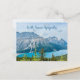 Vacker berg- och sjöfotografering postkort med önskningar om fred och sympati inklusive ett hjärtligt kristet citat av Jesus på baksidan, enligt följande; Fred är den gåva jag lämnar med dig - min fred inte världens sköra fred - utan min fullkomliga fred.