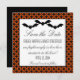 Du har bestämt datum för bröllop. Varför inte låta vänner och familj få veta med en elegant Halloween-temat som denna upprinnelse Glam Fladdermus Spara datum meddelande. Den här designen har en dynamisk orange och svart diamantlattice mönstrad gräns och en trio av fläckig fladdermus. Enkel att anpassa, lägg bara till information om din speciella dag för att göra det här unika spara ditt eget datum! Klicka på knappen "Anpassa" för att hitta alternativ för att ändra typsnitt eller färg.