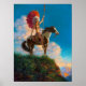 Urinhemsk amerikansk kvinna: Hövdingen, amerikansk indian: Stjärnskådarens spjut - I den robusta skönheten i det amerikanska västern på 1930-talet trotsade en ung kvinna vid namn Elara förväntningarna. Med eldrött hår, smaragdgröna ögon och en ande lika vild som prärien var hon en kraft att räkna med. - Elaras passion för hästar var oöverträffad. Hon tillbringade otaliga timmar ridande på sin älskade hingst, Zephyr, över de vida slätterna. Hennes skicklighet med spjut var legendarisk, hennes mål så exakt som en örns. - En dag, medan hon utforskade en avlägsen kanjon, snublade Elara över en dold uramerikansk lägerplats. Intrigerad av deras kultur och traditioner sökte hon tillstånd att ansluta sig till deras stam. Imponerad av hennes mod och skicklighet välkomnades hon av de äldste, som gav henne namnet "Stjärnskådare", en symbol för hennes orubbliga ande. - Elara omfamnade sin nya identitet och bar en magnifik fjäderprydd huvudbonad och en läderklänning prydd med invecklad pärlstickning. Hon lärde sig stamens traditioner och blev en respekterad medlem. - När