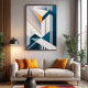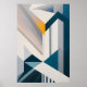 En abstrakt arkitektur reser sig i geometriska linjer som korsar varandra som skyskrapor av ljus. Den gyllene tonen bryter igenom i blått och grått och avslöjar en symbolisk soluppgång som förenar styrka och delikatess. Konsten förmedlar modernitet, hopp och de växande städernas dynamik.