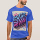 Den här fetstilta graffiti-stil T-shirt-designen har en dynamisk, tredimensionell stil med en gatukonst-estetik. Blåblå, lila och rosa är mycket skarpa, men färgstänk och droppar gör att det blir en verklig känsla i stadslivet. Perfekt för gatuentusiaster, höft-skutt fläkt och de som kärlek edgy, konstnärligt mode.