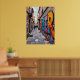 Den här målningen skildrar en smal stadsbana med färgstark, texturerad graffiti som täcker byggnad väggar. Bilden har en kraftig impasto struktur, med tjocka, uttryckliga penseldrag som ge ger gatukonsten en upphöjd, taktisk kvalitet. Två figurer går ner i gränden och marken är fylld med färgstänk som tillfogar scenens dynamiska och energiska känsla. Den övergripande sammansättningen är en levande och djärv representation av ett modernt stadslandskap.