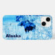En blå och vit bild av en koma i en stadsplats under vintern. Anpassadet "Alaska" står också med. Möss bor året runt i många algeriska samhällen. Här i Anchorage finns det omkring 1 500 djur, tillsammans med vargar, brunbjörn och andra vilda djur. De beter sig vanligtvis väl. De gator i kor vid korsningen efter att ha väntat på en promenadsignal. Från ett foto av en älg som vandrade genom min gård.