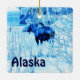 En blå och vit bild av en koma i en stadsplats under vintern. Anpassadet "Alaska" visas också. Möss bor året runt i många algeriska samhällen. Här i Anchorage finns det omkring 1 500 djur, tillsammans med vargar, brunbjörn och andra vilda djur. De beter sig vanligtvis väl. De gator i kor vid korsningen efter att ha väntat på en promenadsignal.