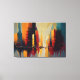 Detta dynamiska abstrakta konstverk fångar energin och rytmen i en modern stad genom höga vertikala former och djärva arkitektoniska siluetter. Varma nyanser av bärnsten, rost och djupröd stiger upp bredvid svala blåtoner och kolgråa toner och skapar en kraftfull kontrast som frammanar skyskrapor badade i skiftande ljus. Droppande färg och strukturerade penseldrag ger en känsla av rörelse, som om staden själv andas, pulserar och ständigt utvecklas.