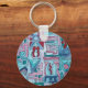Urban Street Two-Funky Keychain With Hand Painted Abstract Geometric Watercolor Art In Blue, Green And Red