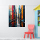 This artwork plunges you into the vibrant pulse of a city, re-imagined through pure geometry. It's a dynamic visual symphony, capturing the rhythm and grandeur of an urban street with strong lines, fragmented shapes, and dazzling reflections. Muted tones form the city's structure, while brilliant neon pops mimic electric lights and signage, celebrating organized chaos and vivid beauty.