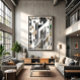 En explosion av diagonala linjer, kontrasterande block och neutrala toner accentuerade med grönt och guld—konst som fångar stadens kaotiska men strukturerade rytm. Perfekt för djärva visuella effekter, berättande djup och arkitektonisk modernitet.