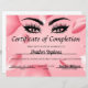 Urkund om avslutad utbildning Lash Tech Rosa