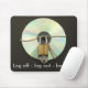 Musmattan med fotoet av CDROM som säkras med padlocken och, kedjar. På mörk grå färgbakgrund. Med ord "urloggningen - logouten - var säker!", En påminnelse av betydelsen av att säkra din arbetsstation och att skydda data.