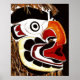 En målning av en japansk nordvästra amerikanska totemiska cedarmask.