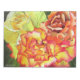 Från ursprunglig vattenfärgsmålning av tre ro av Sacha Grossel. En skarp, färglös utformning av gul ros, orange ro och hybridrosa och gul ros i en trio i nära fokus, makrostil. En detaljerad utformning i botaniska stil för ro älskare överallt.