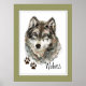 Ursprunglig vattenfärgad Grått-Varg- Spålar djur Poster
