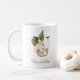 Ett personlig kaffe mugg med ett brev-"U"-monogram, med dekorativa orkidébilder och illustrationer av handflatan löv. Anpassa det enkelt med ditt namn eller skapa en unik gåva till dina nära.