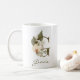 Ett personlig kaffe mugg med ett brev "G"-monogram för bohemierna, med dekorativa orkidébilder och illustrationer av löv för handflatan. Anpassa det enkelt med ditt namn eller skapa en unik gåva till dina nära.