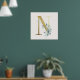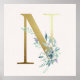 Ursprungligt N Golden and Blue Blommigt Monogram P Poster