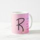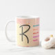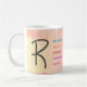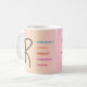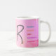 Mugg kommer att vara en favorit för alla från din mormor till din tonårssyster. Med högernas budskap kan ett mugg bli någons skattade följeslagare till komen i åratal. Den här designen har en vacker, handdragen "R" från brev i svart kursiv stil på en fantastisk vattenfärgsbakgrund. Den lämnat sidan visar en varm övertoning mellan gult och rosa, medan högerna visningar en mjuk övertoning mellan rosa och gult. Området kring brev är vibrerande ord i olika färg, inklusive blått, orange, rött, lila och rosa, vilket belyser positiva egenskaper som börjar med brev "R". Den övergripande effekten är en visuellt tilltalande och upplyftande utformning som firar skönheten hos brev "R" och dess egenskaper. Vattenfärgsbakgrunden tillför en smula elegans och sofistikering och skapar den här perfekten för inspiration eller motivation.