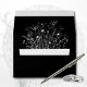 Det här alternativet för svartvit meny, där du väljer OSA av botaniska blommor, är elegant och enkelt. Framsidan är minimal med skripttypografi. Baksidan har samma känsliga men feta blommigt som visas på inbjudan.