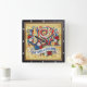 Fira ett kvarts millennium av amerikansk kultur med USA 250 Years of Freedom Scroll-klockan. Denna högenergiska klocka har en högupplöst grafik som visar en livfull, utsmyckad folkkonst-estetik. Designen centreras runt stiliserade "USA"-bokstäver ifyllda med patriotiska röda, vita och blå virvlar och stjärnor, inramade av ett frodigt arrangemang av röda och blå rosor och vita prästkragar. Ett graciöst pergamentliknande band längst ner stolt proklamerar "250 YEARS OF FREEDOM" i feta blå bokstäver. Mot en ljus tonad vertikal träplankebakgrund och inramad i en mörk, texturerad kolgrå fyrkantig ram, härmar konstverket på ett mästerligt sätt den tredimensionella, impasto-liknande texturen hos handmå