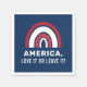 En röd, vit och blå amerikansk regnbågsdesign för den USA-national som är patriotisk och stolt över sitt land. Texten är anpassningsbar och kan personifieras med ditt eget anpassade meddelande. Du kan ändra typsnitt, textfärg, textstorlek, bokstavsavstånd, bakgrundsfärg och flytta texten med hjälp av Designverktyget.