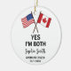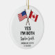 Celebrate USA–Canada dual citizenship with this personalized ornament featuring crossed American and Canadian flags and fully customizable text. This ornament is designed especially for individuals and families who proudly hold both nationalities and want a meaningful keepsake for the holidays or for marking citizenship milestones. Add your name, status, and date to create a unique, symbolic decoration that represents your identity and heritage. A thoughtful gift for dual citizens, expat families, and cross-border celebrations.