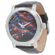 En livfull avbildning av den amerikanska flaggan med virvlande mönster i rött, vitt och blått, med stjärnor mot en dynamisk bakgrund.