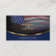 Affärskortet i elegant har en luxuriös konkav guld-ledningens dekoration mot en stor amerikansk flagga på en slimmad svart bakgrund. Perfekt för professioneller som tittar för att visa patriotism och sofistikering, denna högkvalitativa utformning är idealisk för företagsägare, konsulter eller andra inom sektorer som har att göra med stat, ekonomi eller lagstiftning. Gör ett djärvt påstående med öga-fångstkortet och professionellen, perfekt för att lämna ett varaktigt intryck.