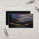 Affärskortet i elegant har en luxuriös konkav guld-ledningens dekoration mot en stor amerikansk flagga på en slimmad svart bakgrund. Perfekt för professioneller som tittar för att visa patriotism och sofistikering, denna högkvalitativa utformning är idealisk för företagsägare, konsulter eller andra inom sektorer som har att göra med stat, ekonomi eller lagstiftning. Gör ett djärvt påstående med öga-fångstkortet och professionellen, perfekt för att lämna ett varaktigt intryck.