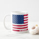 Visa din patriotiska själ med vår USA flagga personlig kaffe mugg. Mugg som framställs av keramik av hög kvalitet har ett sjudande och hållbart tryck av den amerikanska flagga, med möjlighet att lägga till en personlig som namn eller ett meddelande. Oavsett om du njuter av morgonkaffet eller sipprar på te är mugg det här perfekten för att fira kärlek för USA. Underbar som gåva eller för din egen använda.