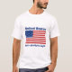 En redigerbar titel och slogan medföljer de röda och vitrandarna med vitstjärnor på blåttcantonen av amerikanska flaggan på bekläda av denna t-skjorta. Baksidaen visar en specificerad karta av USA.