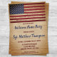 Patriotic Rustic American Flagga-inbjudan till hem. Vänner och familj till era soldater i inbjudan hälsar party välkomna med denna patriotiska militära inbjudan från USA flagga. USA:s amerikanska flagga är konstruerad för att ta fram ett utkast av rostfritt trä.. Denna välkomstinbjudan till militären är också perfekt för militära inbjudningar från pension, militära utplaceringar, soldater som lämnar partiinbjudningar, förändringsplats för personalisering. Anpassa den amerikanska flagga inbjudan med din soldathändelse, namn och party. Se vår samling för att matcha militära välkomstgåvor, party favors och förnödenheter. COPYRIGHT © 2021 Judy Burrows, Black Hund Art - Med alla Höger reserverade. Amerikanska Flagga inbjudan till det militära välkomsthemmet Patriotic USA