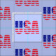 USA flagga Rött vitt blått på blek blå bakgrund Tyg