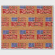 Konstverket till jul. Fönster, snöflingor och skidor utgör flagga i Förenade Stater. Trianglarna på brädorna representerar bergen och ciklarna i snö.