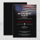 Praktisk amerikansk flagga som vajar mot en svart bakgrund. En elegant mall för pensionsfest som är enkel att redigera. Denna eleganta design är lämplig för veteraner, militärer, poliser, statliga jobb eller jobb relaterade till patriotism.
