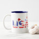 "USA" i Stars och stripes med självmord och kristaller, ett Julgran och en julhatt på "USA" och snöflingor i rött, vitt och blått i bakgrunden. Unik USA-design för julhelgerna.