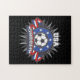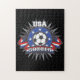Patriotisk USA fotboll utrustar med fotbollboll centrerar in med USA övretext och lägre fotbolltext på läst vit- och blåttbaner!