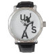 Amerikanska boulderer klättrar på brev i USA. Black bild på vit bakgrund