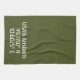 Schablonstil vit font på armégrön bakgrund.