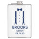 Denna 8 oz flaska är bra för ushererna. Om allt ditt bröllopsparti kommer att ha kostym, skulle denna design med hängslen och en flasbrok i blått vara perfekt. Ledig men formell. Det skulle vara bra för en svennefest eller möhippa. En rolig present för en bra stund. Skaffa en till alla i bröllopspartiet - de kommer att älska dem! Titeln kan ändras till brudgum, brudgummens närmaste man, best man etc.